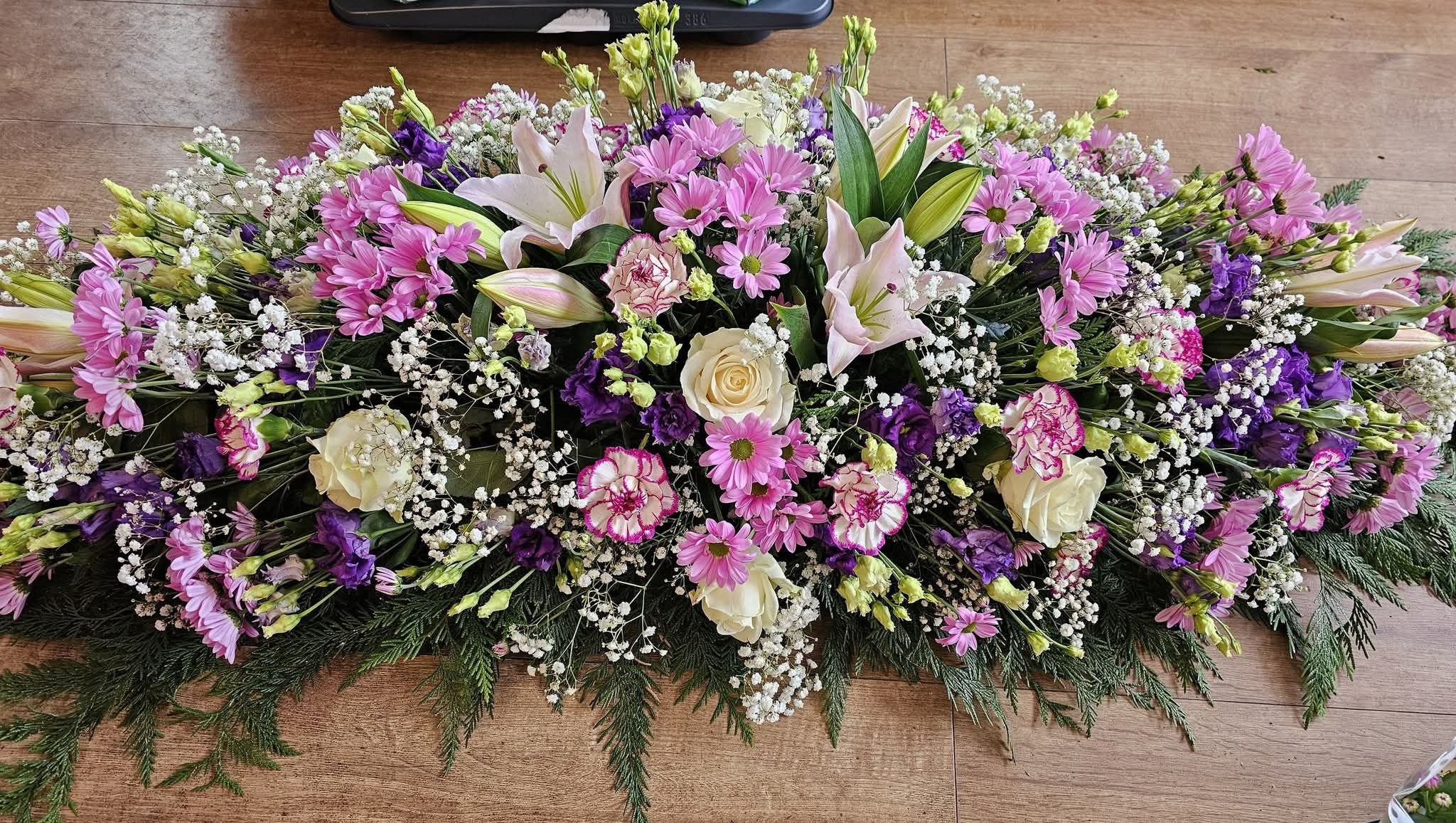 Casket Flower Spray – 3ft £180, 4ft £240, 5ft £360 (Mixed Flowers)